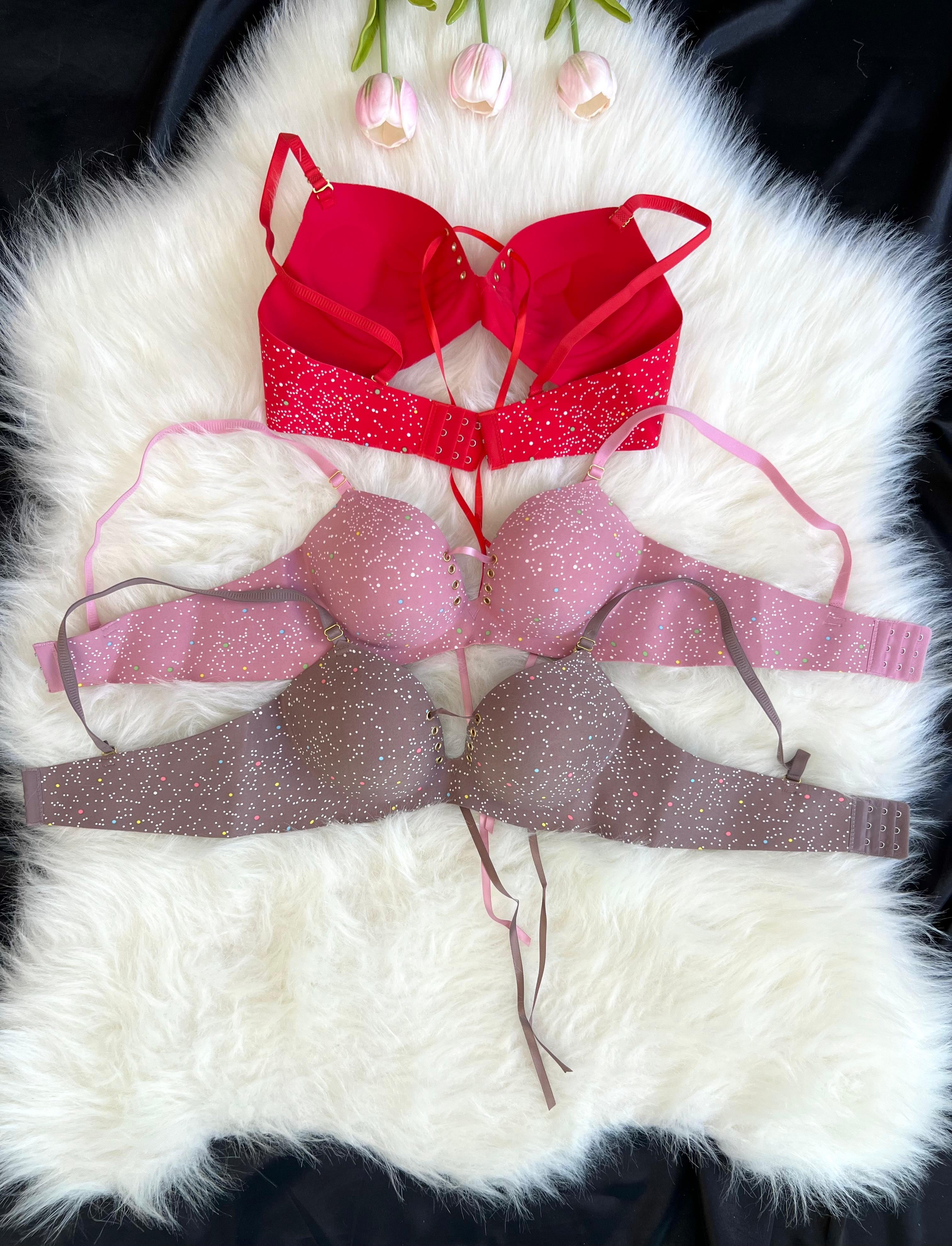 3 Adet Benekli Bağcıklı El Destekli Tekli Lazer Kesim Sütyen Set