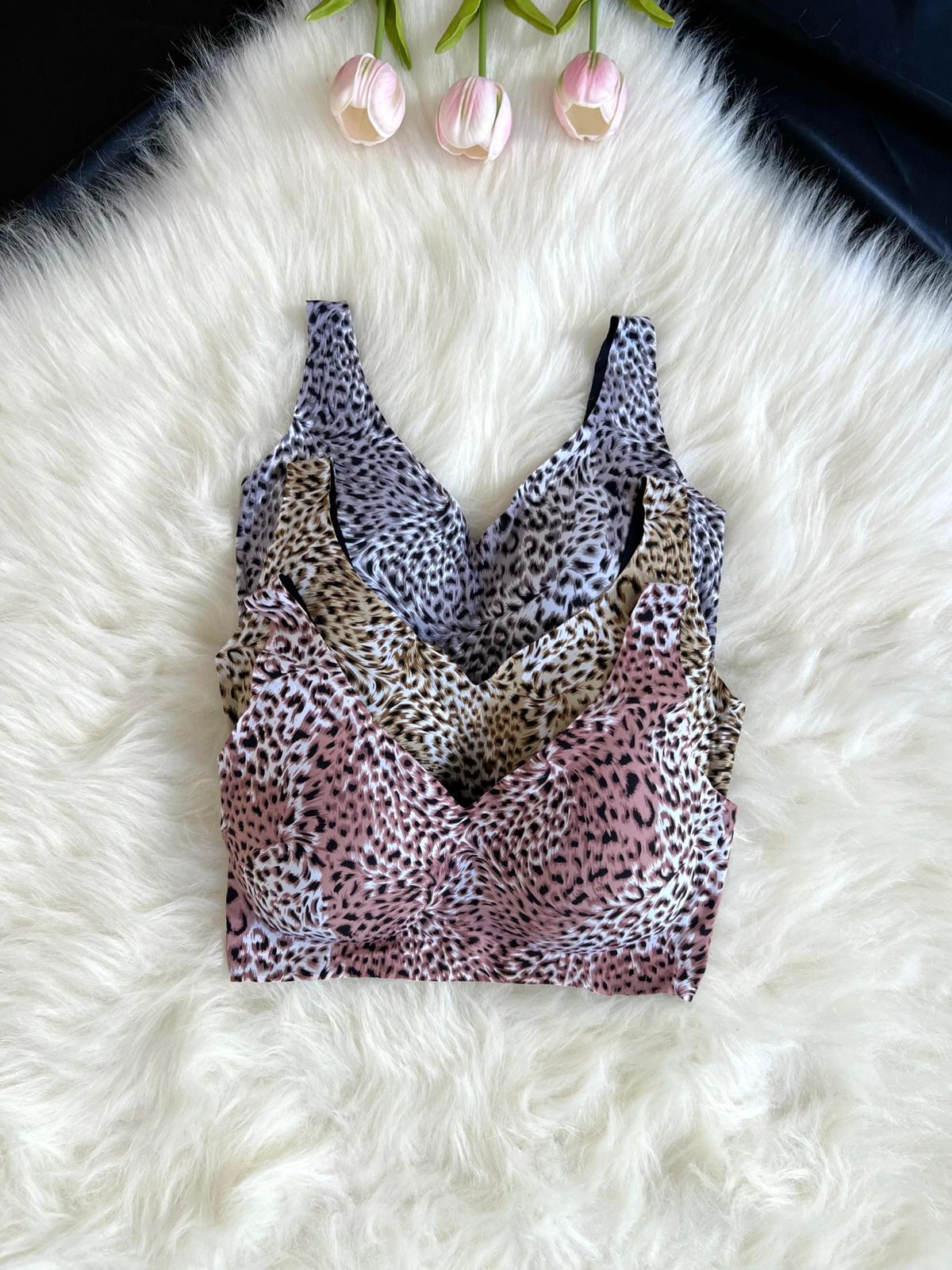 3 Adet Leopar Desenli Lazer Kesim Bralet Set