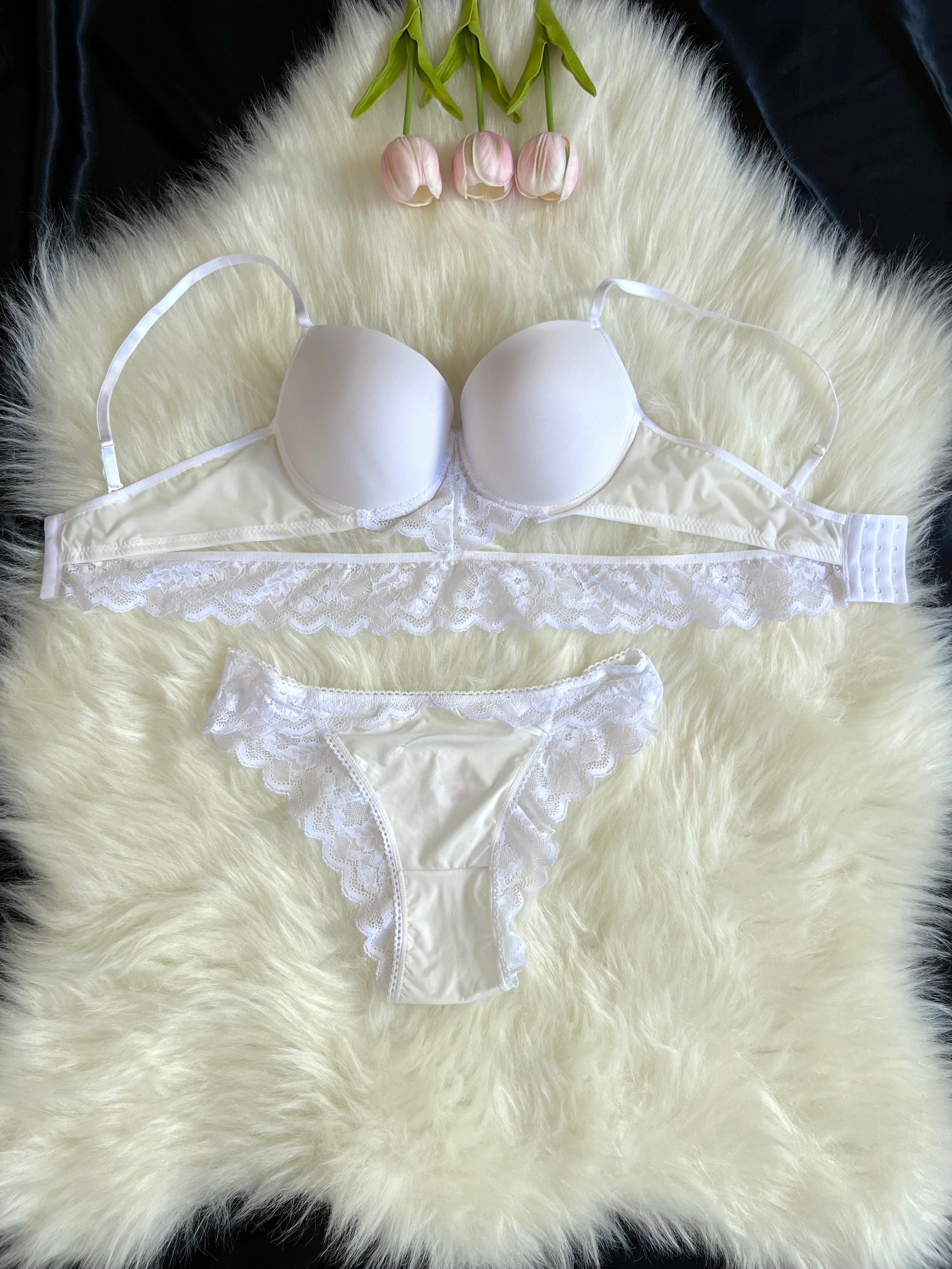 Beyaz Dolgulu Balenli Alttan Dantelli Sütyen Takım