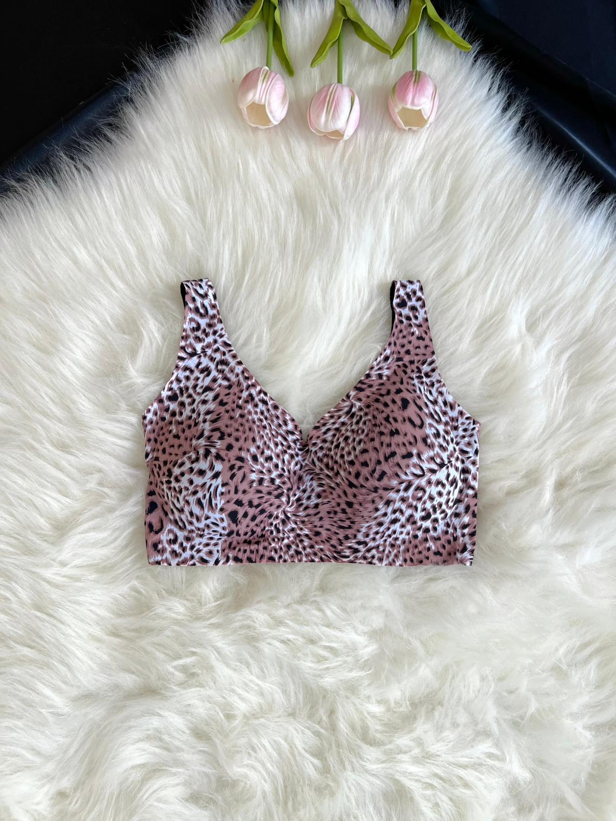 Gül Kurusu Leopar Desenli Lazer Kesim Bralet