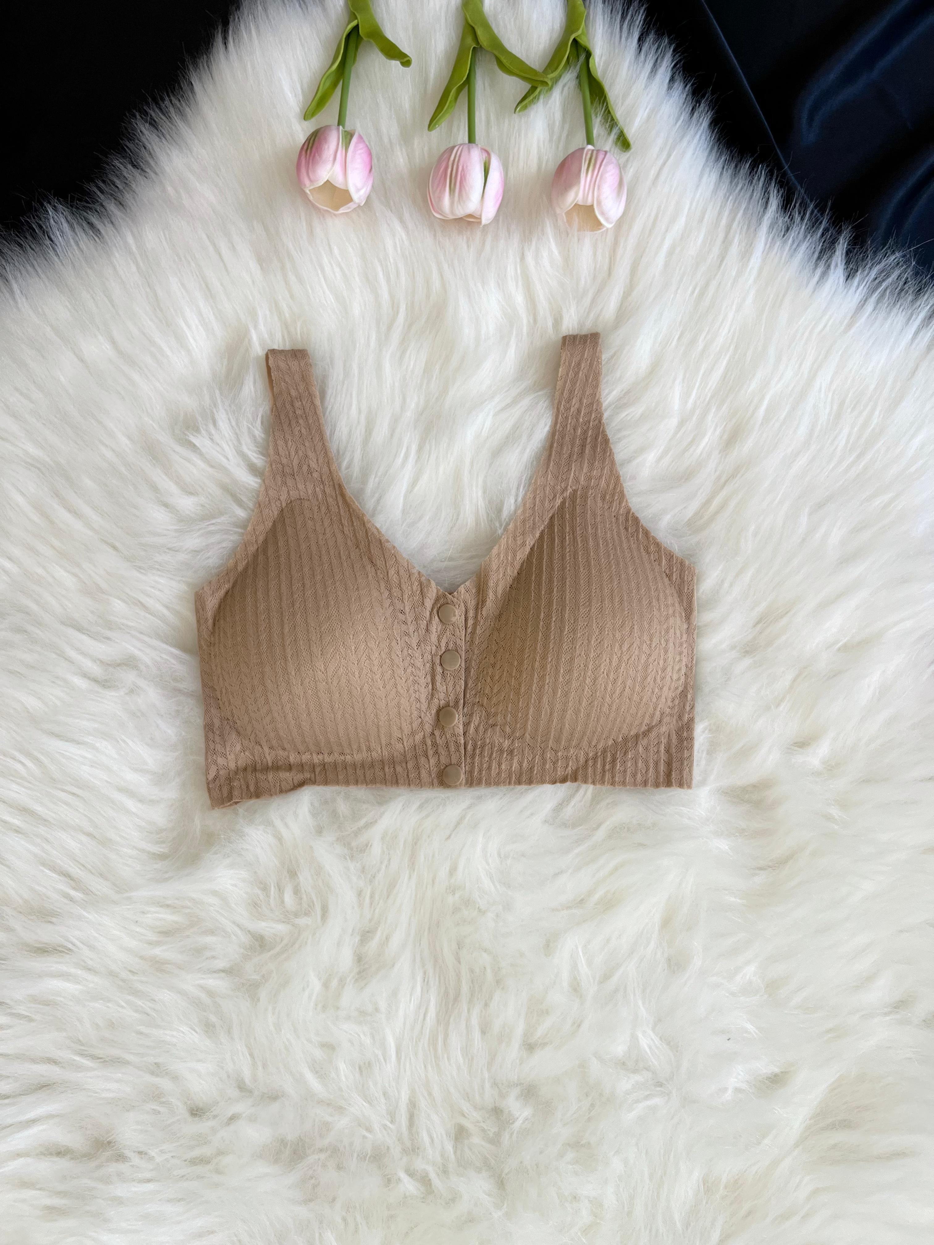 Kahverengi Dolgusuz Düğmeli Bralet Takım